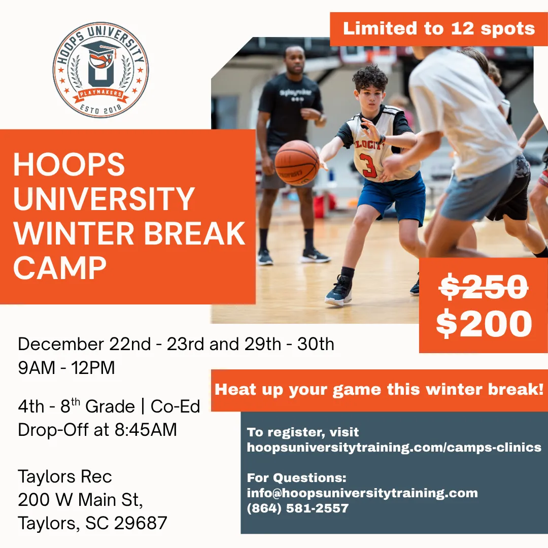Email Info@hoopsuniversitytraining.com or call 864-581-2557 with questions