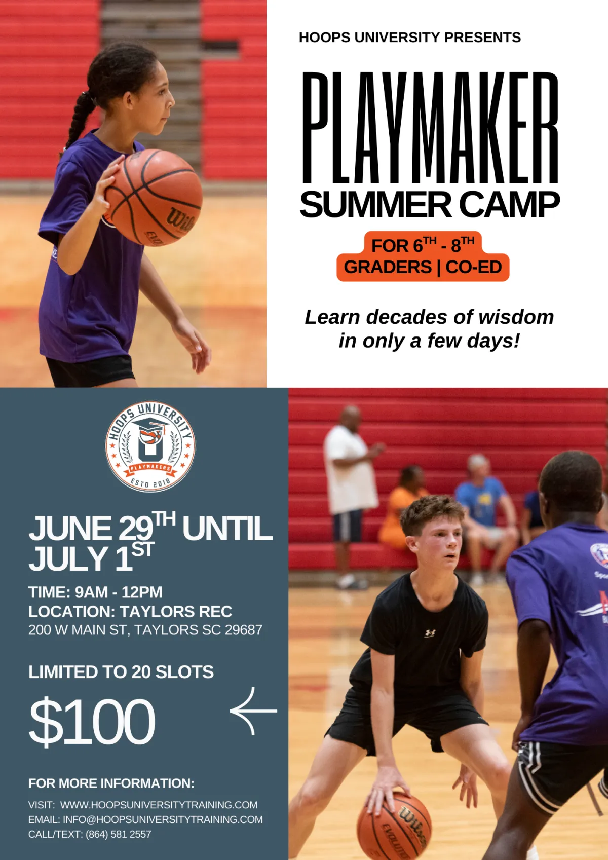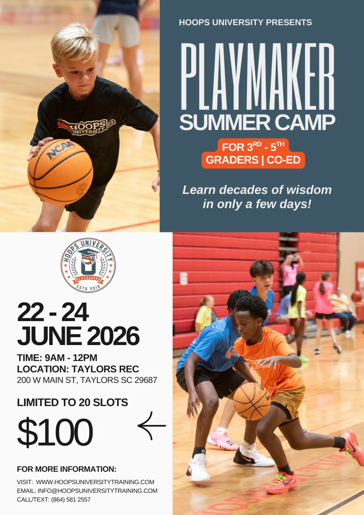 Email Info@hoopsuniversitytraining.com or call 864-581-2557 with questions