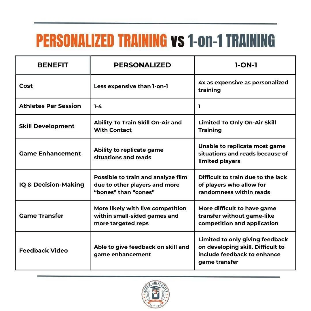 You'll get 4-8 personalized training sessions with our Hoops University Player Development Coaches